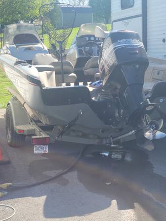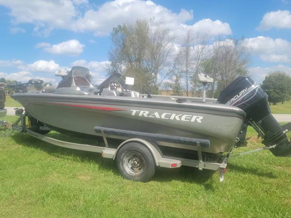 The engine is were the value is! 150 Mercury Engine 2-stroke in excellent condition; recently serviced by Tracker; new oil, new spark plugs, new coils, receipt for 1871.00