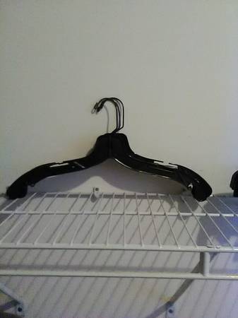 Large box of commercial hangers, for slacks and dresses/shirts. Many, many hangers.