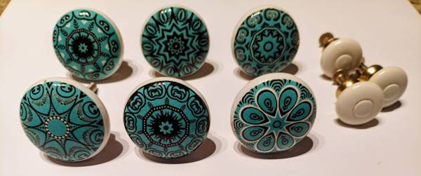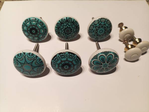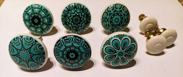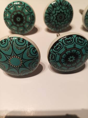 Brand New! (6) Six Aqua Green Vintage Look Flower Ceramic Knobs Door Handle Cabinet Drawer Cupboard Pull Please Call or TEXT Me for More Details or Respond Through Craigslist