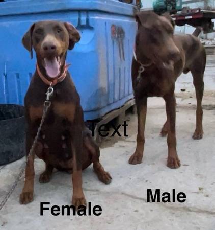 3-Year Old Dobermans for sale. $150 each 1 Red Female 1 Red Male 1 Black/Tan Male None are fixed and can breed. Call.
