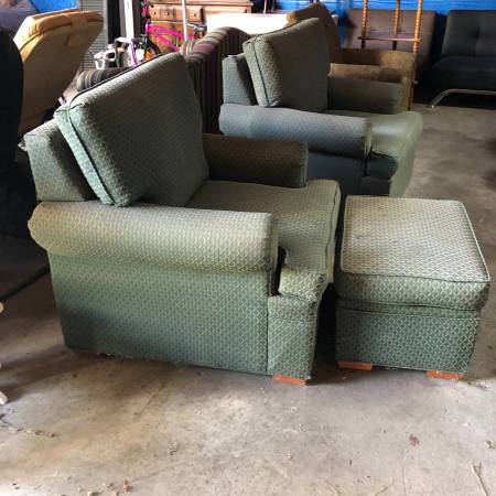 Two chairs comfort roll arms with ottoman. The chair are in good condition. It comes with one ottoman. The price $55.00 OBO call for more information.