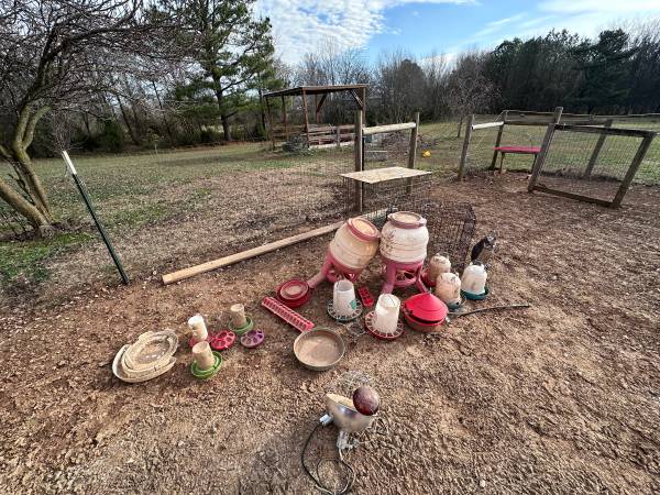 Sold all chickens now everything else gotta go. Have 12x8 coop made of 4x4 , 2x4 and metal, have 8x8 cattle panel coop, freezer for feed, 2 of the 300 gallon water containers, 1 new brooder, 1 portable brooder, several heat lamps, waterers,fencing , post. Feed, everything gotta go . Text is best, 1two 70 seven 7six 6 nine one 4. $900 for everything. Bring trailer and load it all up.