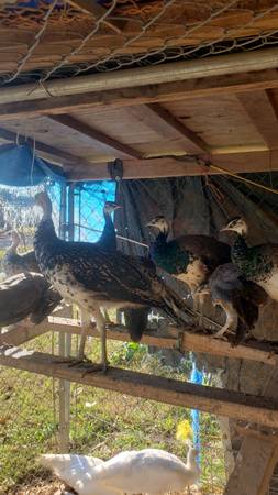 I have 2025 hatch peafowl / peacocks for sale. A few Black Shoulder. A few White and several India Blues. Selling them by pairs. Can sell single India Blue and Black Shoulder males only.....if you just need a male.