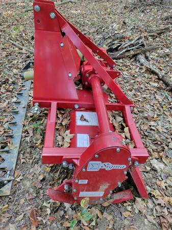 Sigma 5ft rotary tiller. Cat 1 Rarely used. In good shape. Comes with pto shaft.