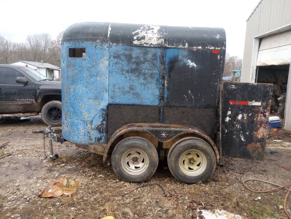 I have three trailer to sale no titles no titles first blue and black to horse trailer ready to use just needs light fixed solid trailer second gray 2 horse with tack part in front of it can be made open stock very easily it could use little TLC but nothing that keeps it from been used now this white trailer was to horse been made into open stock trailer in very good shape good winter time trailer all pull good and ready to be used none them have titles and none them have lights that work will take 1000 each for them or may trade bigger trailer depending what u have will not reply scams or automated messages call or text two70two61two46four