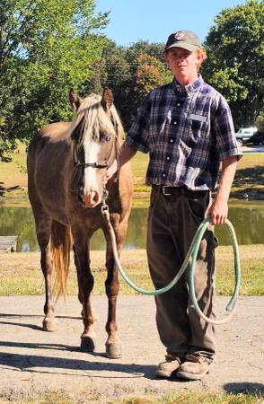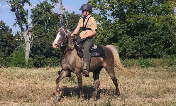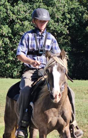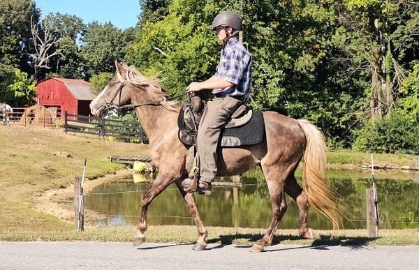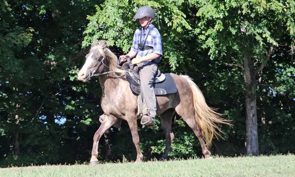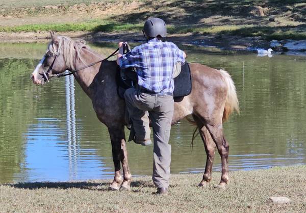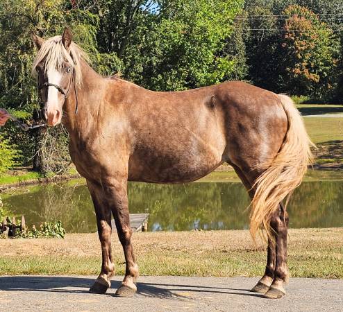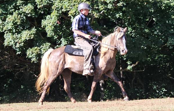 Honey is looking for her forever person. She is a lovely Rocky Mountain Pony mare. Lovely sturdy build and gorgeous color. Honey comes from a case of neglect, unhandled and untrained. She also had a mild case of founder. She has been with us for months getting sound, fit and learning to be a riding horse. She has a very smooth four beat saddle gait. She will also walk, canter and gallop. She adores trail riding and enjoys exploring with her human partner. She is best suited for an advanced beginner as she is still learning and needs a confident handler. She is happiest with a rider who will be her leader. She has handled any type of trail we have put her on. She is surefooted with tough obstacles, soggy trails or difficult terrain. She loves a challenge and going new places. She is fine with traffic, farm equipment and atvs. She rides well with other horses and will lead or follow. She has courage and confidence in the arena or on the trail. She is intelligent and very trainable. She has been barefoot sound on easy footing and is sound on rocks and hard pack with front shoes. This little mare has come so far and is ready for her own person!