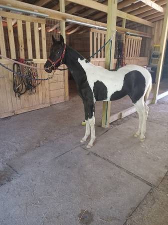 This filly is 6 months old, weaned and eating good. She is handled daily, very friendly and in your pocket. Loves to be brushed, will tie to post or cross ties. Picks up all feet, been fly sprayed and bathed. Very easy to handle. $2500.00 cash only. For more information please call. Will not answer emails.