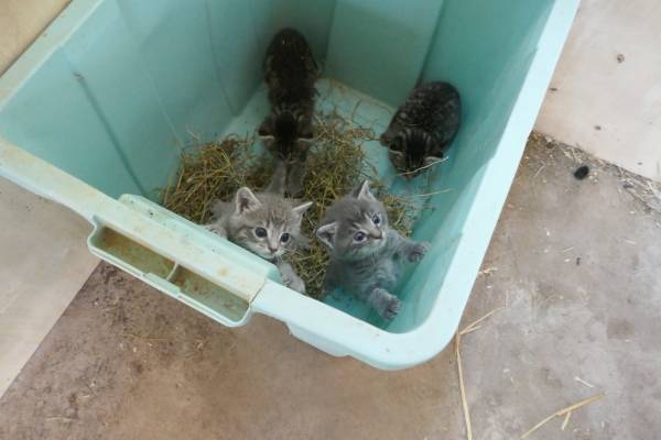 Kittens are about 5 weeks old and ready to play with.