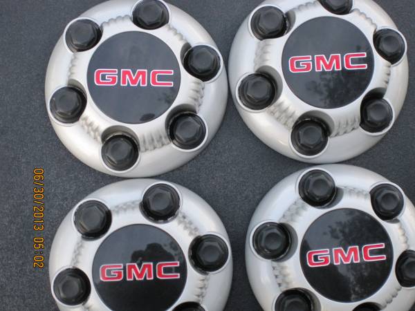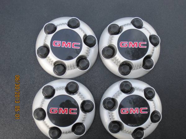 GMC light truck or van 6 lug wheel hubs/cover. (4) in excellent condition from my 2005 GMC pickup truck. Sorry no text. Call cell Phone at top left of page. Please leave message. $100.00. Driveway...