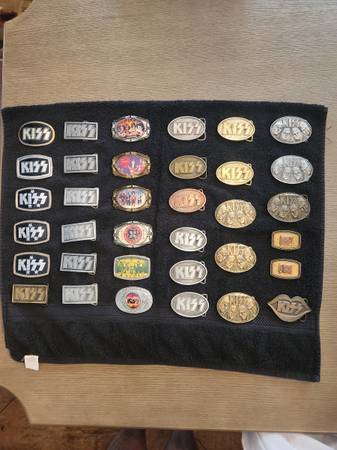 Kiss belt buckles total of 35 in very good condition. Will separate out or sell altogether. Can ship