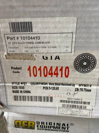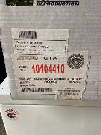 Set of GTA Wheel / rims 1982-92 Firebird/Trans Am. OER They are new in the box. The Color black. The size 16"x 8" One of the pictures Has all the info. Thhe price is $550.00 Call or text for more info show contact info